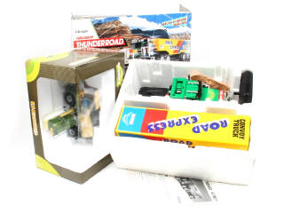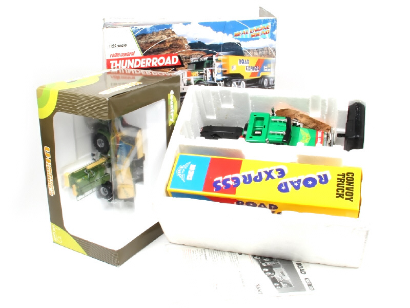 comprend : moissonneuse batteuse (en état 'A+.b' - échelle 1/32ème) & semi-remorque radio-commandé (non testé en état 'B.c') - on y retrouve les marques UNIVERSAL HOBBIES & NIKKO