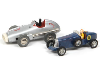 série 'MICRO-RACER' - moteur à clef (fonctionne) - direction par molette - on y joint une BUGATTI de course tintin en état 'R'