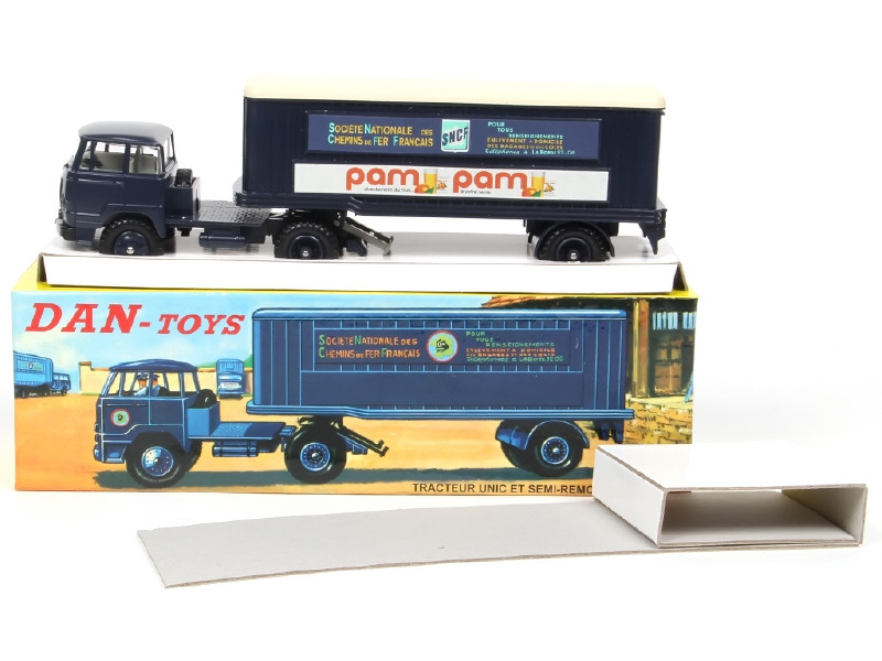 DAN-TOYS (FRANCE) 004 UNIC Semi-remorque 'S.N.C.F PAM PAM' bleu foncé, toit crème