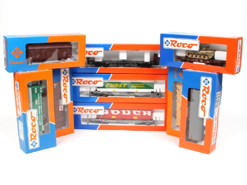 ROCO 'HO' (AUTRICHE) Ensemble de 9 wagons marchandises