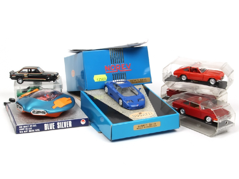 états de 'A+' à 'C' - comprend notamment : UFO COMMANDER 7, BUGATTI EB 110, FORD FIESTA, FIAT X1, BMW 2000 & 3000 - on y retrouve les marques : SABLON, SOLIDO, SHINSEI & NOREV - les boîtes sont en état 'c'