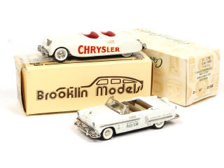 comprend : CHRYSLER NEWPORT PHAETON 1940 & FORD SUNLINER 1953 (sigle de calandre cassé à recoller - avec certificat numéroté 00145 & bulletin d'adhésion au club)