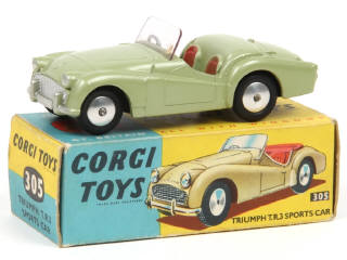 CORGI TOYS (GB) 305 TRIUMPH TR3 vert tilleul métal, sièges tomate