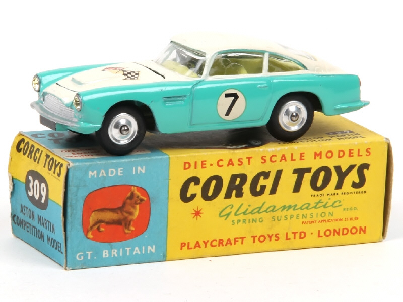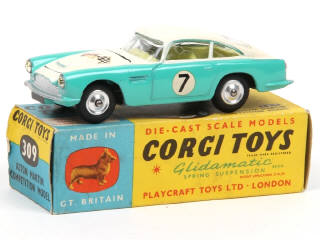 CORGI TOYS (GB) 309 ASTON MARTIN DB 4 Compétition turquoise & blanc