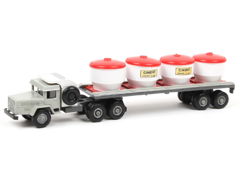 SOLIDO (FRANCE) 301 UNIC Semi-remorque plateau transport de ciment gris, blanc & rouge