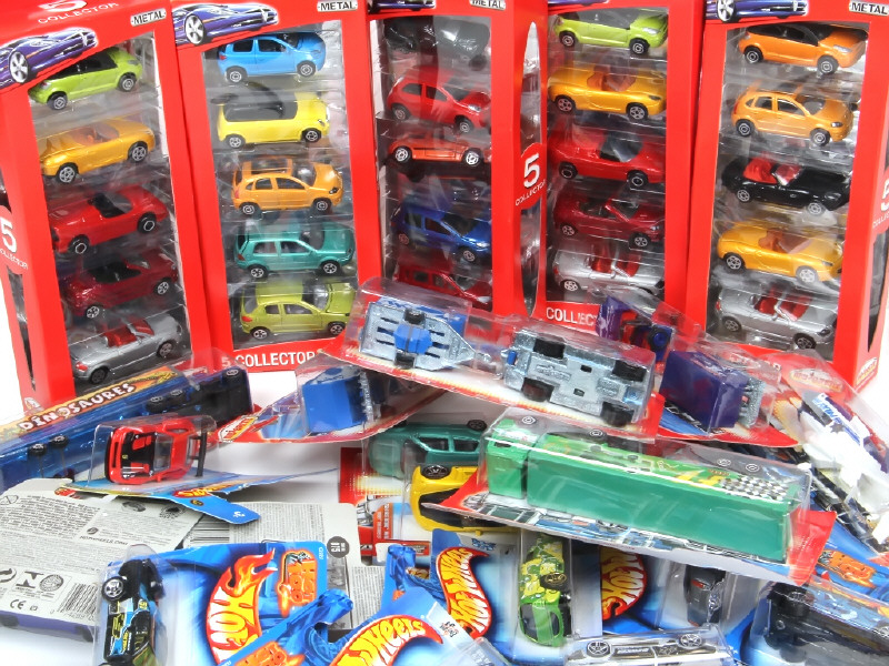 miniatures reproduisant notamment les modèles : PORSCHE, CITROEN, FERRARI & VOLKSWAGEN - on y retrouve notamment les marques : MATTEL & MAJORETTE - quelques boîtes en état 'c'