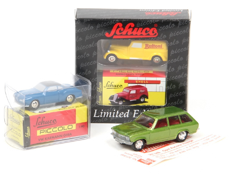 série PICCOLO - comprend : MERCEDES 170 V 'SHELL', 'BUITONI' & VOLKSWAGEN KARMANN GHIA - on y joint une OPEL ASCONA de la marque en état 'A,b'