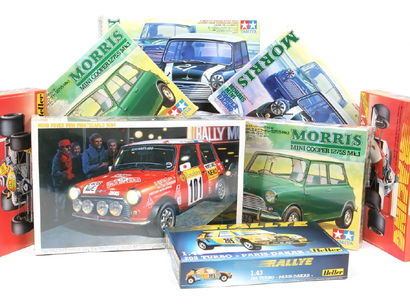 comprend notamment : MINI COOPER, PEUGEOT 205 'RALLYE PARIS-DAKAR', WILLIAMS-HONDA & Mc Laren TAG - on y retrouve les marques FUJIMI, TAMIYA & HELLER - 5 exemplaires sous film plastique