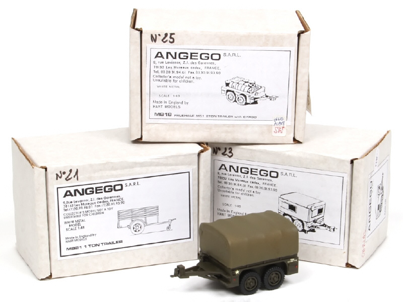 kits montés - comprend : FRUEHAUF 2 TON TRAILER, M14 CARAVAN, M13 2 TON TRAILER & 1 TON TRAILER (références MB16, 17, 18 & 21) - une roue à recoller