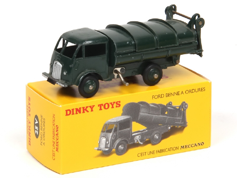 DINKY TOYS (FRANCE) 25V FORD Benne à ordures (version avec intérieur de toit lisse & hayon croisillonné) vert foncé, jantes identiques