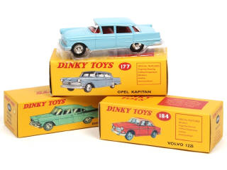 collection 'DINKY TOYS' - comprend : OPEL KAPITAN, VOLVO 122S & DODGE ROYAL SEDAN