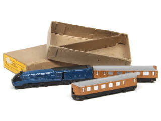 DINKY TOYS (GB) 16 Coffret de train voyageurs 'EXPRESS' bleu, noir, ocre & gris clair