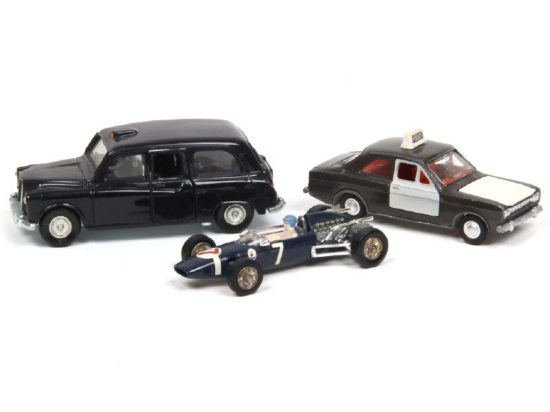 états de 'B' à 'C' - comprend : AUSTIN TAXI, COOPER MASERATI F1 & FORD ESCORT (avec parties repeintes, une fixation d'enseigne cassée & manquante)