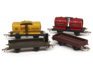 états de 'B' à 'D' - un wagon couvert à guérite non représenté sur la photo - quelques traces de métal fatigue & d'oxydation - petits manques sur certains décalques - carrosseries encrassées