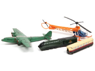 états de 'B' à 'E' - comprend : avion ARMSTRONG WHITWORTH AIRLINER, hélicoptère 'POLICE' & train à vapeur 'BRITISH RAILWAYS' à 3 éléments (dont un non représenté sur la photo)