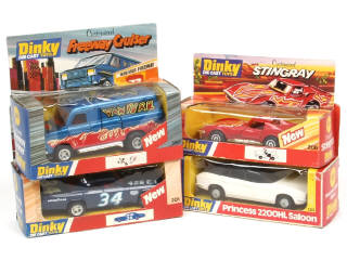 comprend : PLYMOUTH STOCK CAR, FREEWAY CRUISER, PRINCESS 2200 HL & STINGRAY - quelques accrocs sur certaines boites