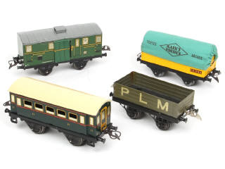 états de 'B' à 'R' - comprend : wagon à ridelles baché, à ridelles hautes PLM (avec pièces non d'origine), fourgon à bagages & voiture voyageurs