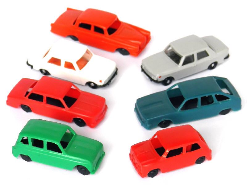 comprend : RENAULT 4, AUSTIN MINI, BMW 2002 & RENAULT 30 - on y joint : une MERCEDES 220 (LIMA) & 2 WARTBURG