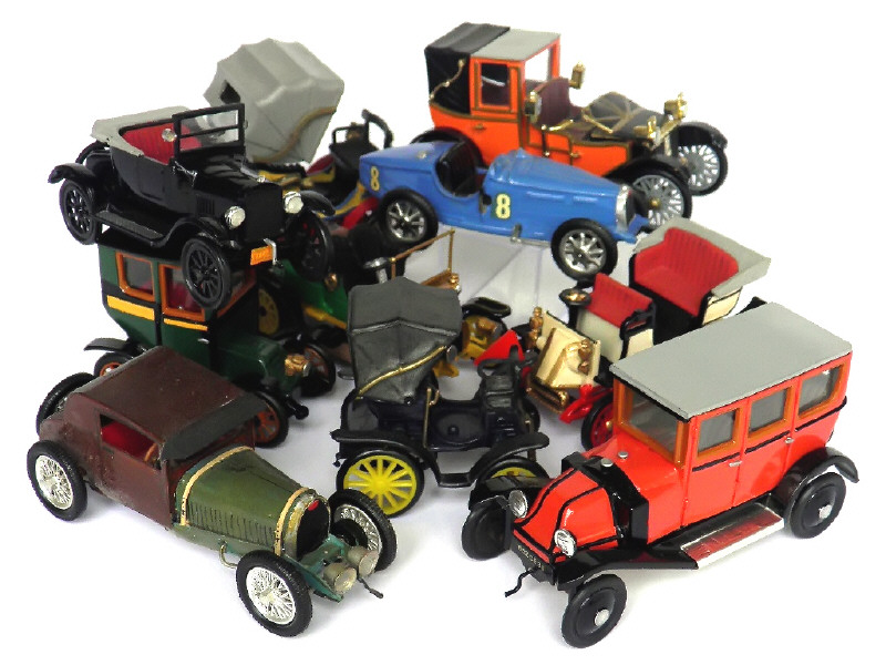 comprend : LANCHESTER, BUGATTI, GOBRON, DE DION, DECAUVILLE, RENAULT, FORD & PEUGEOT - on y retrouve les marques : MINIALUXE, RAMI, DEL, SAFIR & REVELL