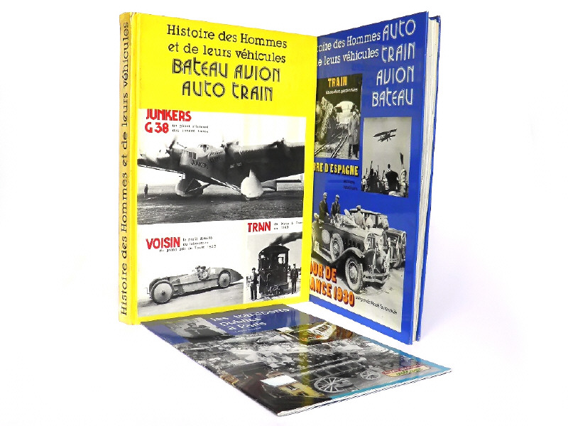 comprend : 'Histoire des Hommes et de leurs véhicules Bateau Avion Auto Train' (2 volumes différents) & dossier découverte village 'Les transports publics à Paris'