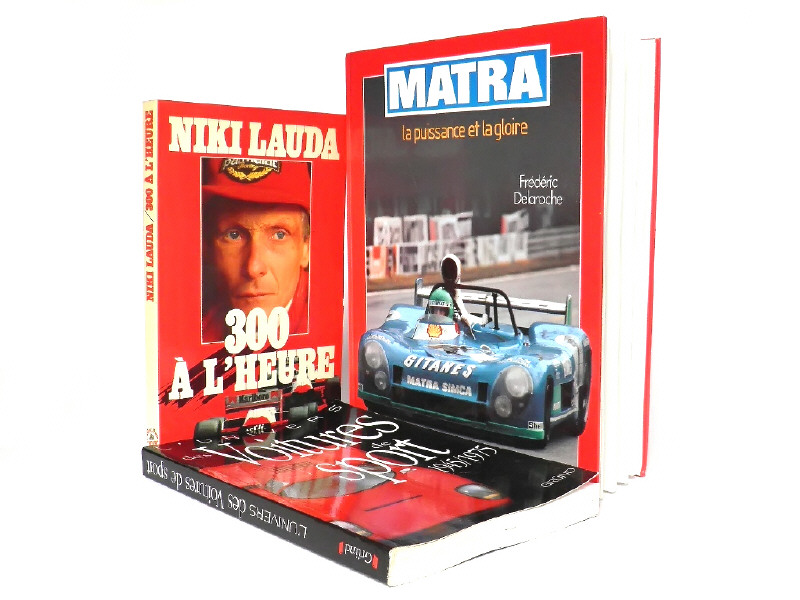 comprend : 'L'UNIVERS des VOITURES de SPORT 1945/1975', 'NIKI LAUDA 300 A L'HEURE' & 'MATRA La puissance et la gloire'