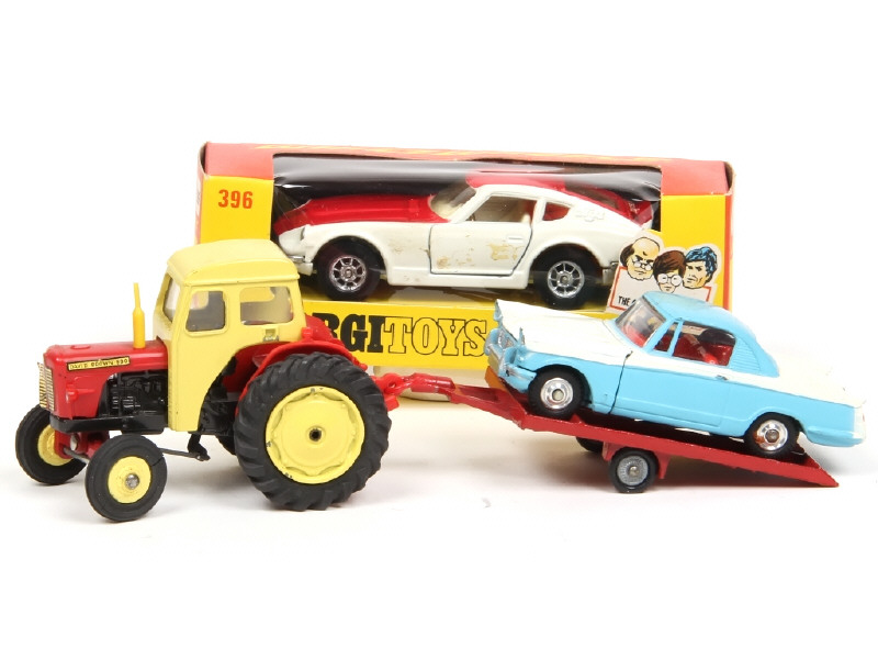comprend : TRIUMPH HERALD coupé, tracteur avec remorque (un pneu coupé) & DATSUN 240 Z (manque quelques décalques - boite en état 'a')