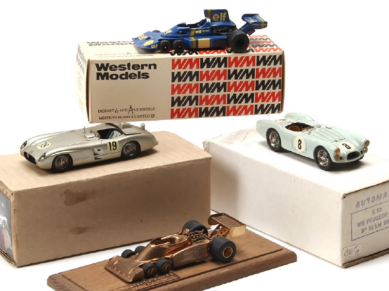 miniatures reproduisant les modèles : TALBOT, MERCEDES & TYRELL - on y retrouve les marques : HECO MODELES, RECORD, WESTERN KITS & AUTODIN (série limitée numérotée 010 réalisé en bronze 'WIBRATTE') - un exemplaire sans boîte & un autre avec boîte non d'origine - quelques petits manques avec carrosseries plus ou moins encrassées