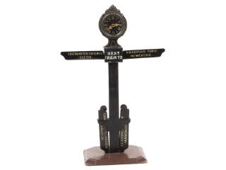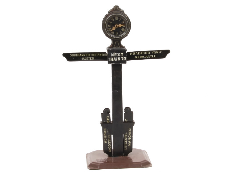 BING (ALLEMAGNE) Horloge ferroviaire avec panneaux indicateurs de destinations 'NEXT TRAIN TO' noir