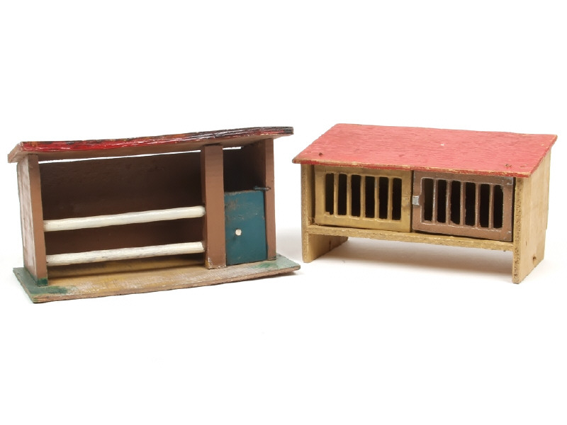comprend : bergerie (dimensions : 17 x 8 x 9 cm) & clapier à lapins (dimensions : 16 x 8 x 8 cm) - coloris différents sur les portes