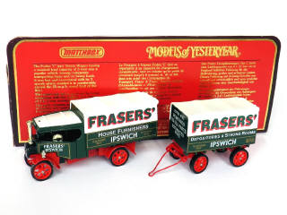 MATCHBOX - MODELS OF YESTERYEAR (GB) Y-27 FODEN C STEAM WAGON 'FRASERS' avec remorque 1922 vert, rouge & blanc