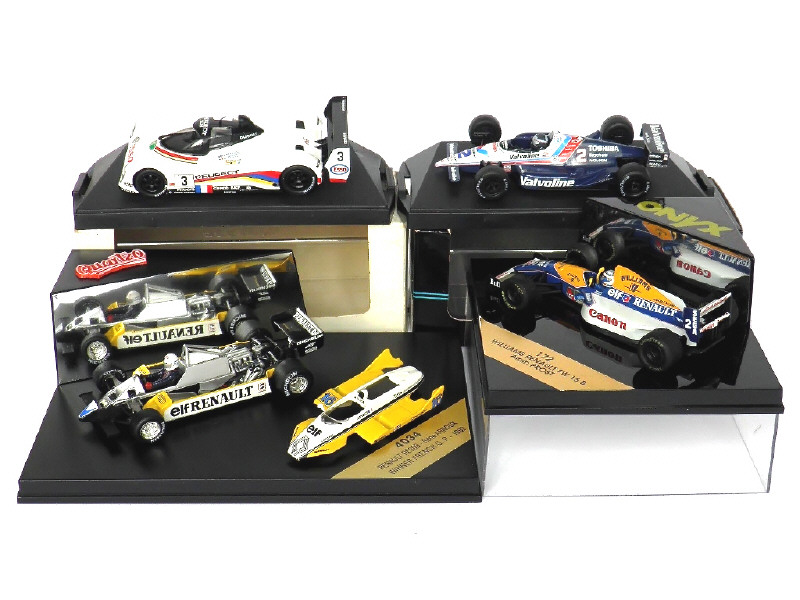miniatures reproduisant les modèles : LOLA, WILLIAMS RENAULT, RENAULT RE30B & PEUGEOT 905 Le Mans - on y retrouve les marques ONYX, QUARTZO & VITESSE