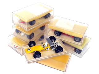 miniatures reproduisant les modèles : Mc LAREN, LOTUS & HONDA - 5 boîtes promotionnelles ELF