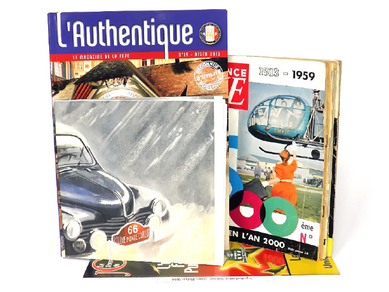 états de 'a' à 'b' - comprend : magazines L'AUTHENTIQUE (2 exemplaires), SCIENCES & VIE (3 exemplaires, manque une couverture), LA REVUE DU JOUET, affiche RENAULT 4CV (édition L'Automobiliste) & 31 fascicules CAMIONS