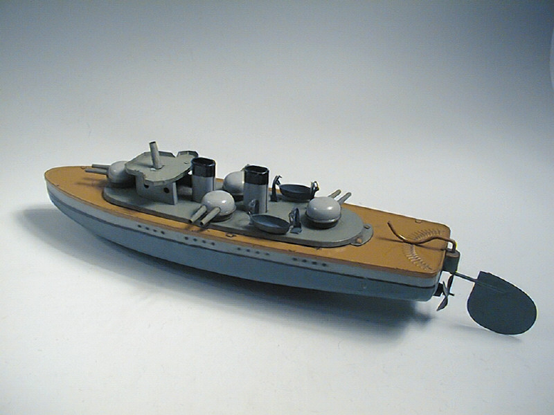 longueur 35cm - complet avec ses 2 canots de sauvetage - le ressort se remonte par la cheminée - mécanisme grippé