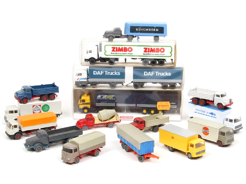WIKING 'HO' (ALLEMAGNE) Ensemble de 15 camions & une remorque