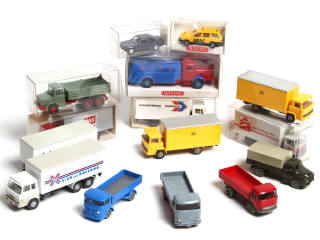 miniatures reproduisant notamment les modèles : BÜSSING, MAGIRUS, MERCEDES, VW & HANOMAG - 7 exemplaires en boite (état 'b') - possibilité de petits accessoires manquants - carrosseries plus ou moins encrassées