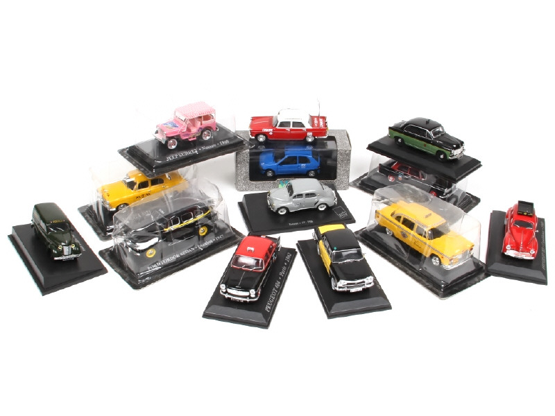 miniatures reproduisant notamment les modèles : PEUGEOT, FIAT, SEAT & RENAULT - on y retrouve notamment la marque : VITESSE - 7 exemplaires sans boite - quelques emballages plus ou moins déformés - petits accessoires cassés & d'autres manquants