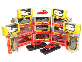 miniatures reproduisant notamment les modèles : CITROËN, RENAULT & PEUGEOT - on y retrouve les marques : BBURAGO & SOLIDO - 2 boîtes avec couvercles manquants