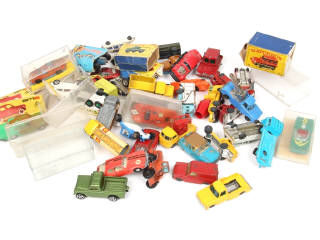 états de 'B' à 'R' - on y retrouve notamment les marques : MAJORETTE, HUSKY, MATCHBOX, CHAMPION, CORGI TOYS & SOLIDO - 3 exemplaires en boîte - on y joint un lot de boîtes (de 'c' à 'e') - avec manques & parties cassées