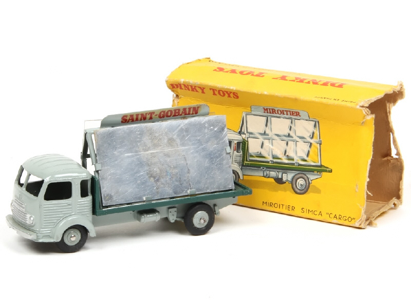 DINKY TOYS (FRANCE) 33C SIMCA CARGO Miroitier 'SAINT GOBAIN' (version avec jantes convexes) gris, plateau vert foncé & jantes grises