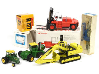 4 engins de travaux publics & 2 matériels agricoles (modèles artisanaux dont un avec parties cassées) - états de 'A' à 'C' - on y retrouve notamment les marques CONRAD & GESCHA
