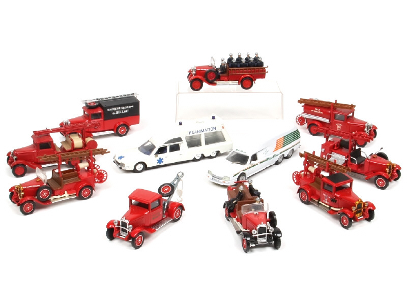 comprend les modèles : C4 de pompiers (9 exemplaires) & CX TISSIER - on y retrouve notamment les marques : SOLIDO & ESDO - avec quelques parties cassées & accessoires manquants