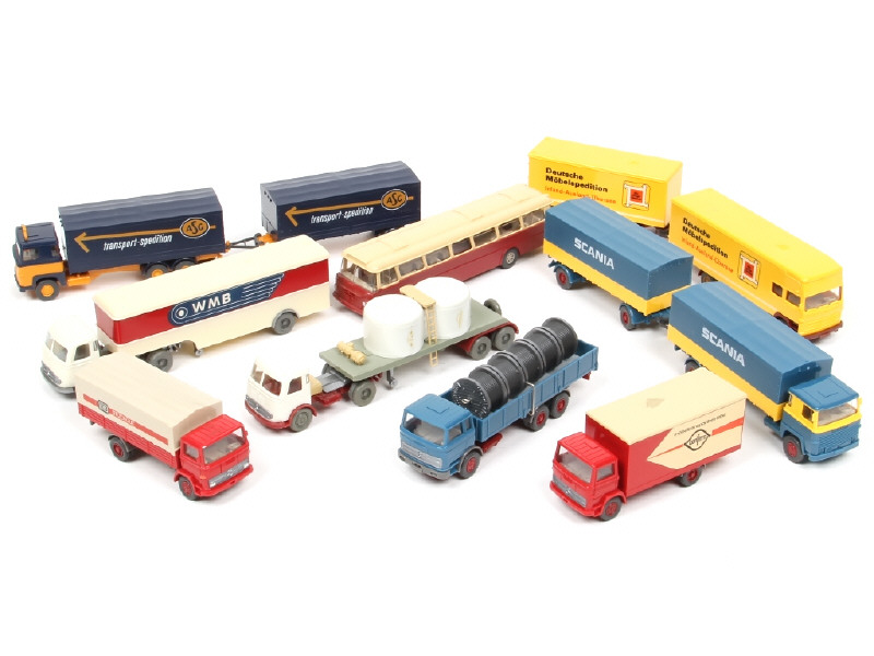 WIKING 'HO' (ALLEMAGNE) Ensemble de 8 camions & un autocar