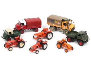 miniatures reproduisant notamment les modèles : RENAULT, MERCEDES & UNIC - on y retrouve notamment les marques : NOREV & UNIVERSAL HOBBIES - quelques petits éléments cassés & d'autres manquants