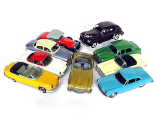 miniatures reproduisant les modèles : PACKARD, MERCEDES, PANHARD, RENAULT, SIMCA & PEUGEOT