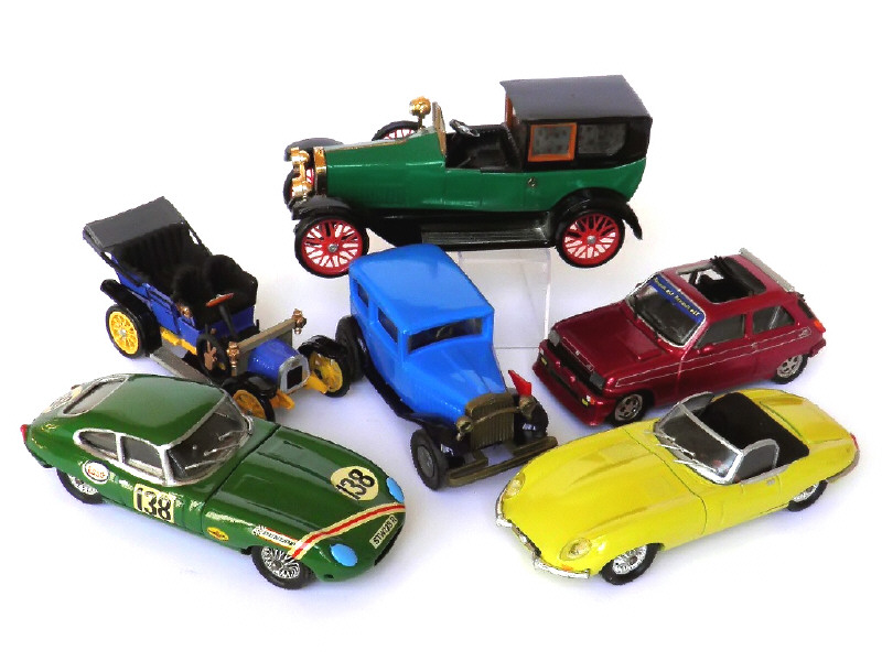 miniatures reproduisant les modèles : HISPANO, JAGUAR, RENAULT, PEUGEOT & FIAT (état 'A') - on y retrouve les marques : EKO, MINIALUXE, DEL & POLITOYS