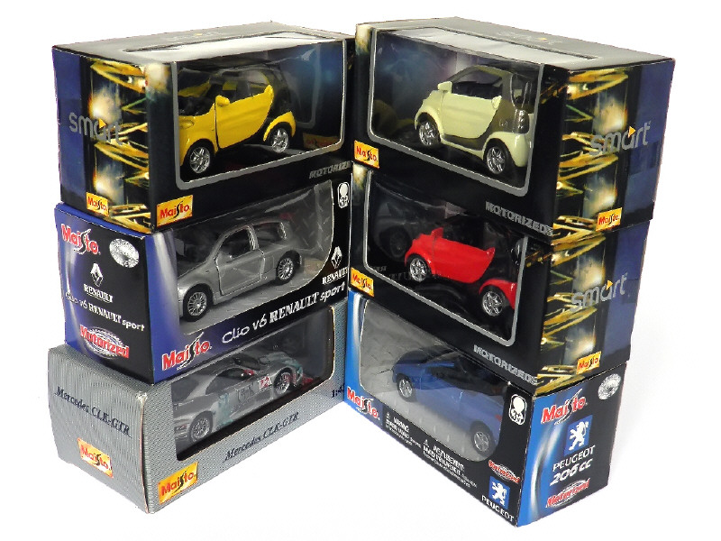miniatures reproduisant les modèles : SMART, PEUGEOT, RENAULT & MERCEDES