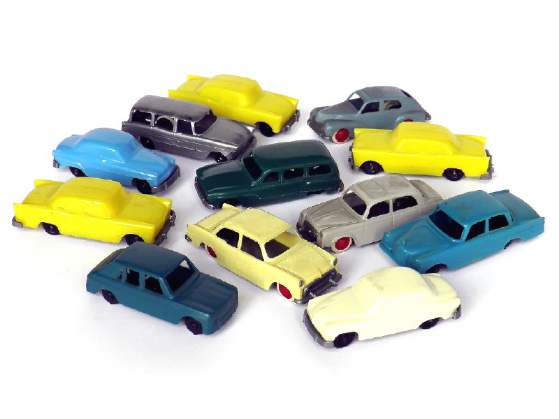 échelle HO - états de 'A' à 'B' - miniatures reproduisant les modèles : SIMCA, PEUGEOT & RENAULT - on y retrouve les marques : JOUEF & CADUM PAX - on y joint une MERCEDES de chez LIMA - quelques modèles encrassés
