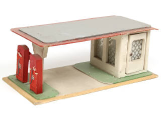 dimensions : 34 x 16 x 13 - encrassé - quelques frottements par endroits - un coin légèrement plié - autocollants en partie manquants ou déchirés