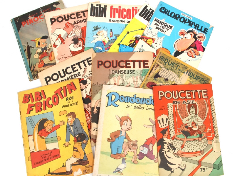 états de 'b' à 'd' - comprend : BIBI FRICOTIN (3 exemplaires), POUCETTE (3 exemplaires), CHLOROPHYLLE, PINOCCHIO, ROUDOUDOU & RIQUET A LA HOUPPE